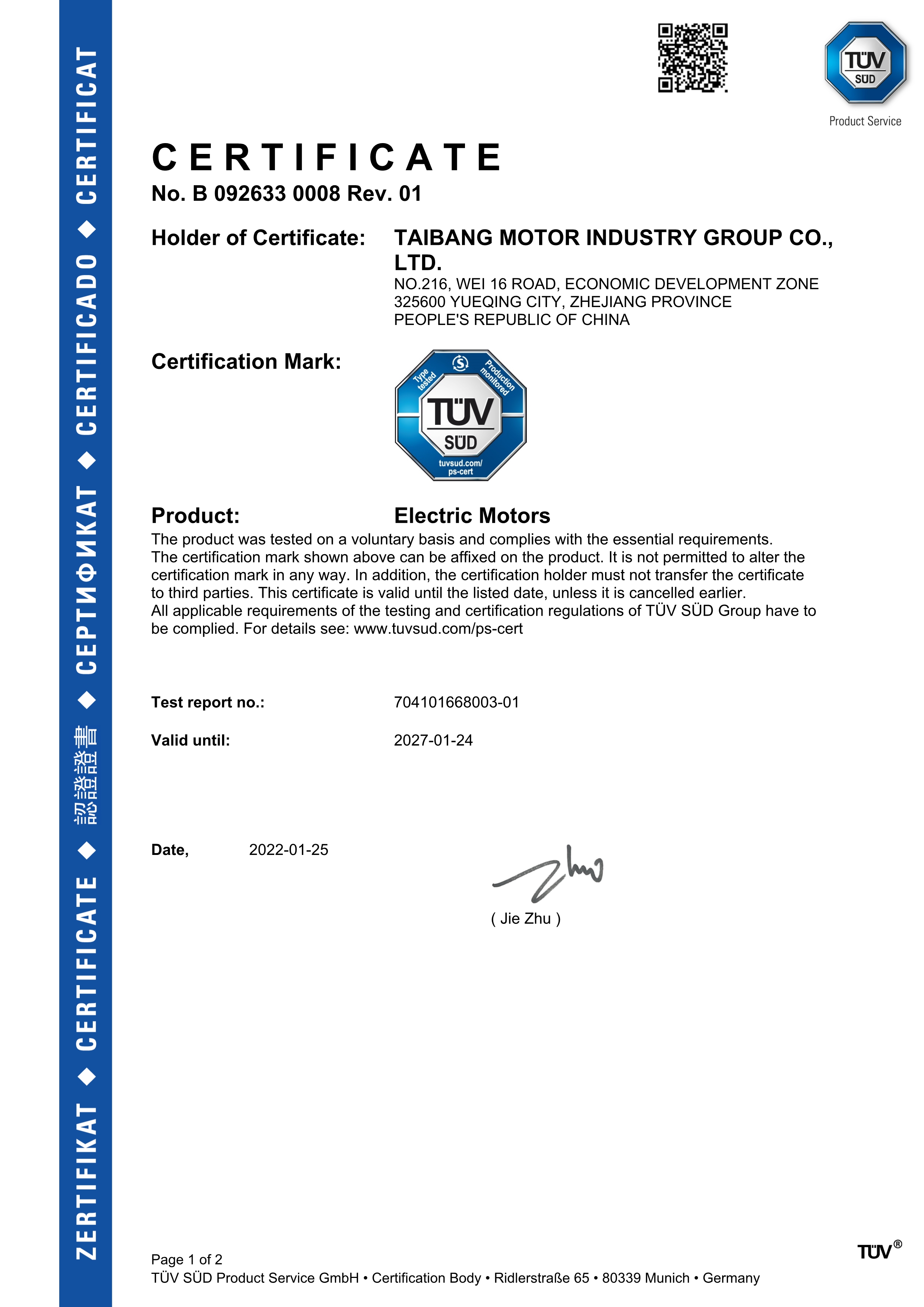 直流電機TUV認證