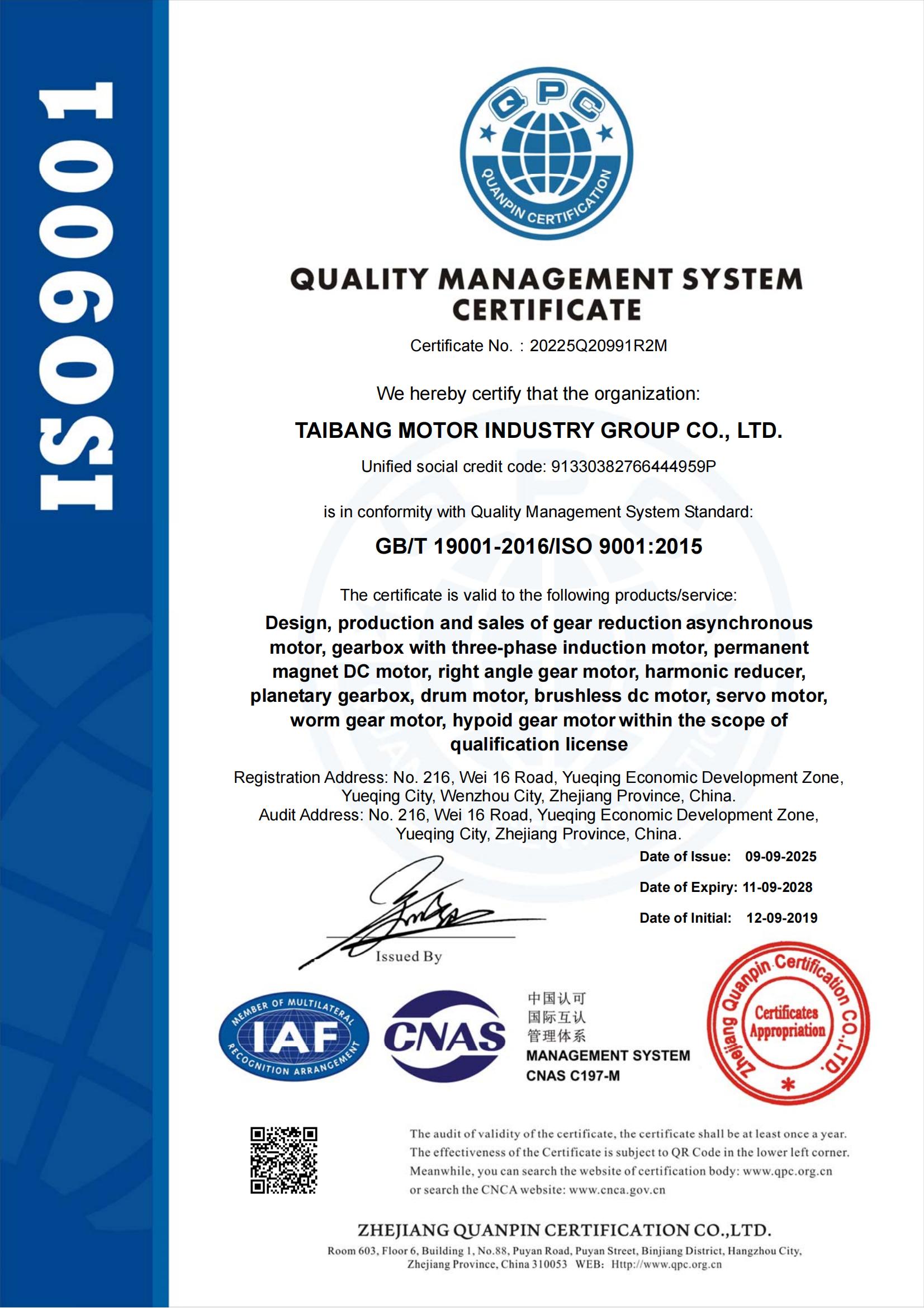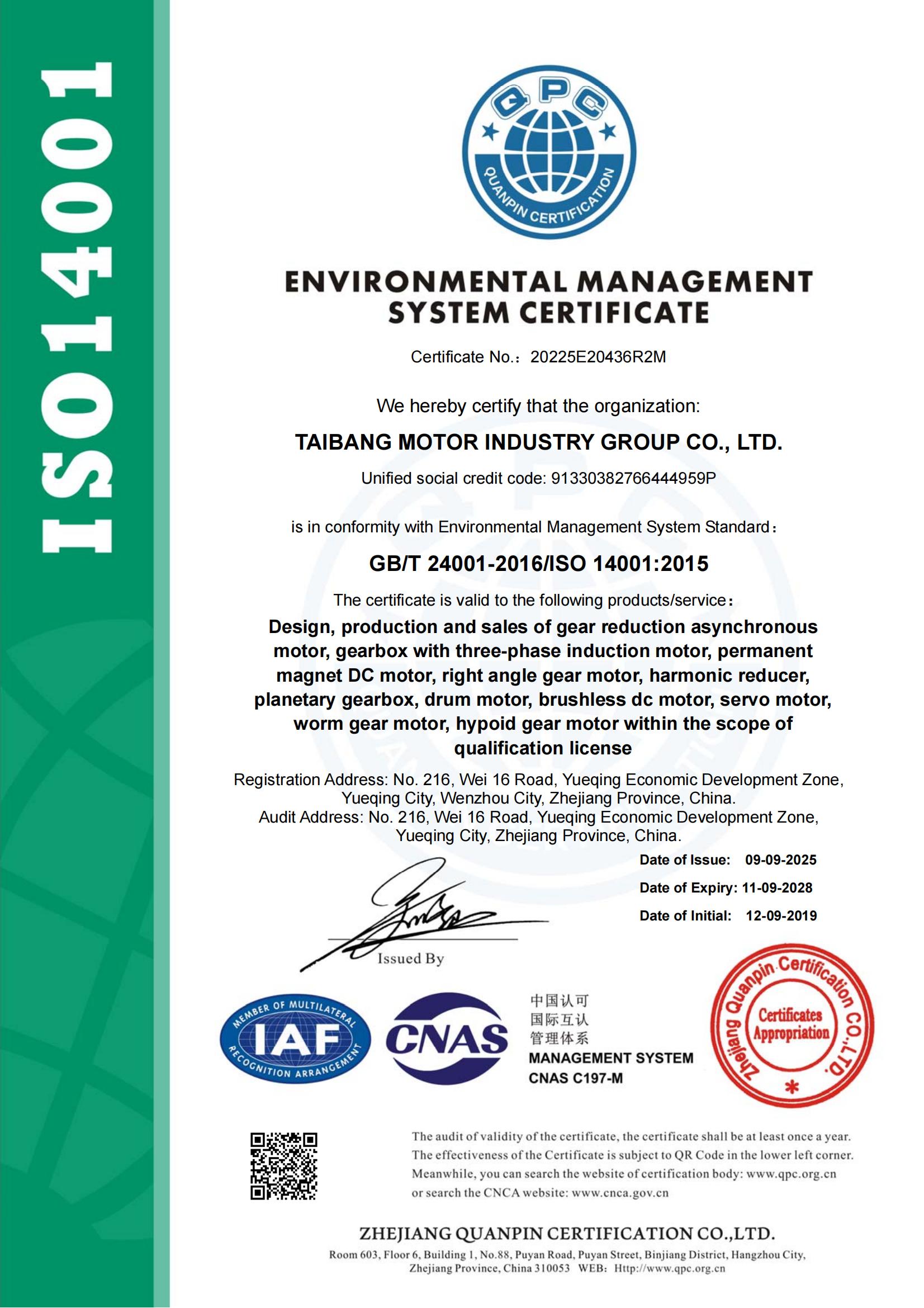 II型自愿認證證書-齒輪減速箱用三相異步電動機