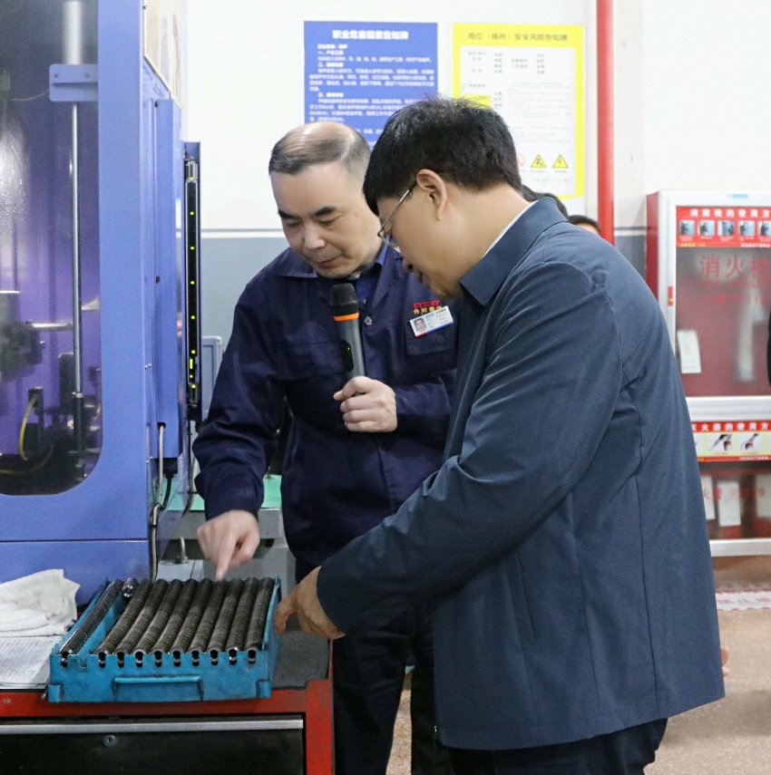 在執(zhí)行總裁羅向陽的帶領(lǐng)下,考察團一行穿行于各車間,深入了解、交流工業(yè)技改項目??疾靾F一行對于近年來臺邦集團在工業(yè)技改方面的成果給予高度肯定和充分贊賞。