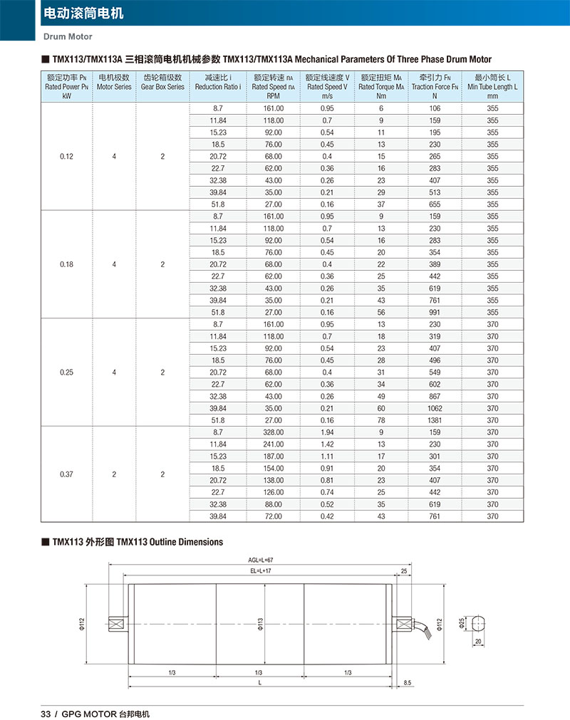 對(duì)傳動(dòng)系統(tǒng)的空間、低噪聲和大功率有特殊要求的輸送設(shè)備可使用TMX113,