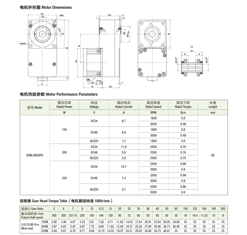 L型中空扁平90無(wú)刷直流減速電機(jī)(150W 200W 250W)