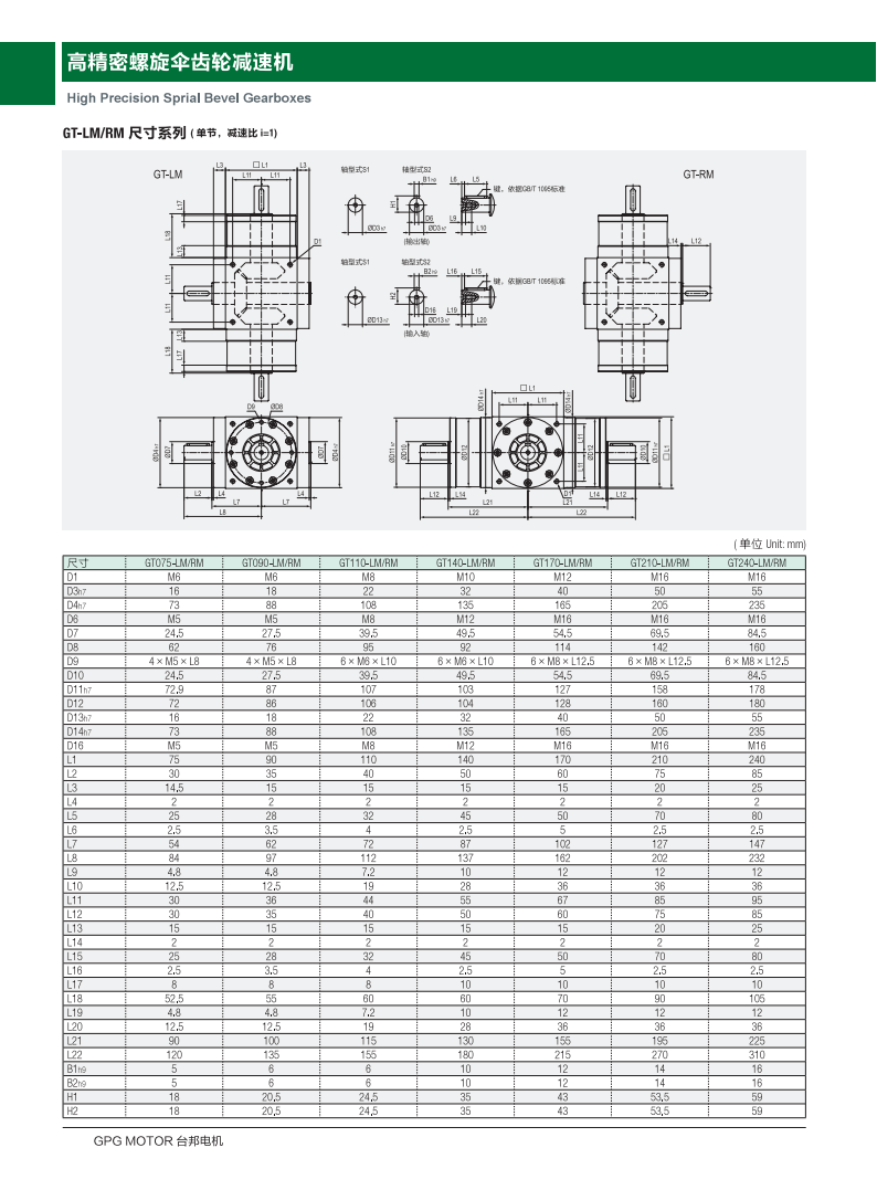 ●采用蝸線傘齒輪,經設計,接觸齒面負載均一、容許高扭矩輸出。